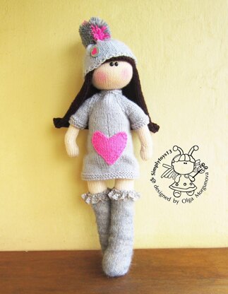 The pattern includes instruction and pictures how to make this girl, her dress, stockings, hat and hairstyle The clothes are taken off. Materials needed • 4 double-pointed needles in a size suitable for the yarn weight you are using. I recommend using needles a size or two smaller than the yarn calls for, to produce a firm fabric. İ used Needles size 2 (3mm) , size 5 (3.5mm) , size 6 (4mm). • Cream acrylic yarn (Kartopu «Flora» (100% acrylic) for doll • Gray and pink yarn for dress and hats • Gray Kid-mohair for stockings • Dark brown colored yarn for hair • Toy stuffing • Plastic eyes or 2 buttons for eyes • Buttons for dress • Lace stockings for -50sm • Wire diameter 3-4mm (For attachment of the head, neck and body together) • Yarn needle • Stitch holder
