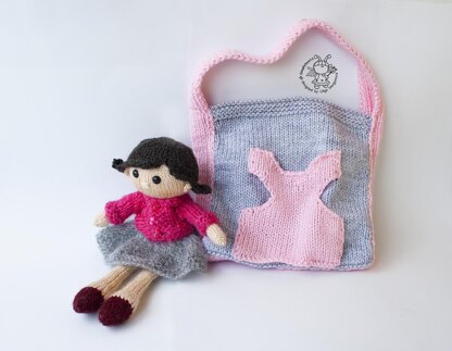 The pattern includes instruction and pictures how to make this girl, her hairstyle ,clothes and Handbag for dolls .The clothes are taken off.