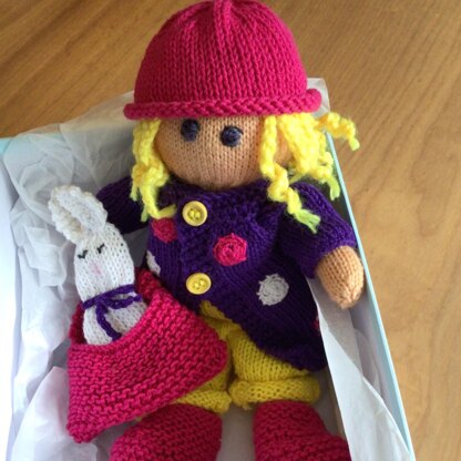 Fleur loves wearing her wet weather outfit and getting out in the garden with her pet rabbit after it has been raining. Patterns include doll pattern, overalls, raincoat, southwester hat, gumboots, bag with a rabbit finger puppet.