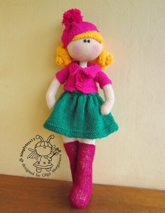 The pattern includes instruction and pictures how to make this girl, her jacket, skirt , stockings, hat and hairstyle The clothes are taken off.
