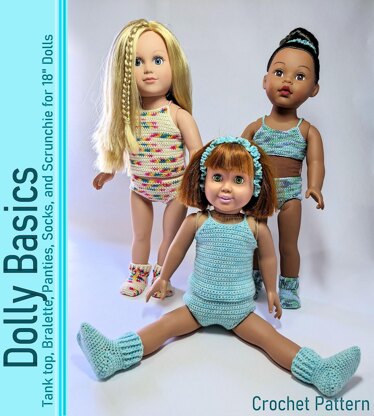 Every doll needs to have their basics. Included in this pattern is instructions to make a cami with an option for back closure, a bralette that can also have a back closure, panties with 2 size options, socks and a scrunchie.