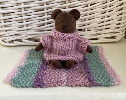 Easy knit rug pattern for a doll's house or favourite small doll or bear. Perfect for using up odd balls of DK wool and quick to make.