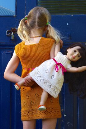 An uber cute little dress for your little one's dolly. A quick and easy seamless knit for mum or grannie (or even dad or grandpa).