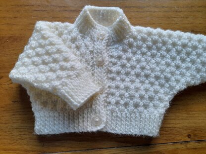 Baby cardigan in seersucker stitch with dolman sleeves, age 0-6 months, 16-18" chest