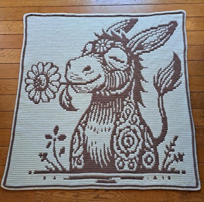 The pattern is written in US English terms and assumes knowledge of the basic crochet stitches (slip stitch, chain, single crochet, double crochet). The pattern includes beginner friendly instructions on how to do the overlay mosaic technique as well as the envelope border. The pattern itself is provided in both written and chart format.