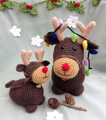 My Doorstop Reindeer would look super cute in any home. The reindeer takes about 100g of Aran yarn plus some contrasting colours, but you may want to buy more for my other BONUS pattern Included with Doorstop Reindeer. This gives you a smaller reindeer which would make wonderful gifts and toys. You could end up making all eight reindeer and Rudolph too. I did! The pattern is not complicated and most pieces start with a magic circle and worked in continuous rounds. I loved creating these adorable reindeer and hope you will have as much pleasure making them.