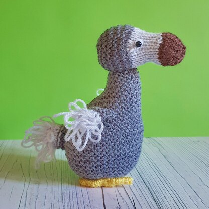 This is Dora the Dodo! She is a very cute and cuddly dodo who is just waiting to hop into your hand for a cuddle. Dora is 20 cm (8 inches) tall and is knitted flat on 4mm needles. No knitting in the round, or tricky technical stuff, so she's a fun, simple knit, which is suitable for beginners or someone looking for a chilled project. You'll need to know how to knit, and purl, and also how to work loop stitch. I've included a loop stitch tutorial in the pattern, along with a link to a YouTube video where I show you how to do it. You can use the dark grey, light grey, yellow and brown DK yarns of your choice, and suggestions for Stylecraft DK yarns are given in the pattern. You'll receive a 6-page PDF knitting pattern with detailed knitting and making-up instructions, with colour photos to help you on your way.