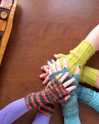 Doric mitts combine any colorway with clever knitting tricks to make mitts for the whole family. Doric columns are the simple ones and sometimes simple is best! In these mitts the simple lines allow the malabrigo colorways to shine through.