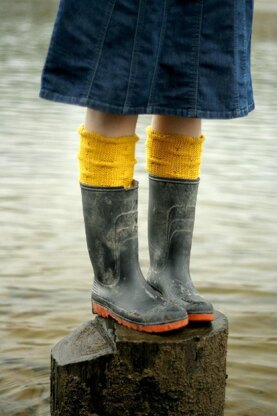 Special cables pinch up these cuffs here and there, and scrunch down into perfect layers. The sizes are for children to plus sized adults. The adult sizes use dk weight, the smaller childrens sizes use fingering. sizes: 5 (7, 9, 9, 11.5, 14, 16.5, 19) inches. The first three use Gloss Fingering, the last five use Gloss DK. You will need 1 (1, 2, 2, 2, 2, 3, 3) skeins This pattern is both charted and written out.