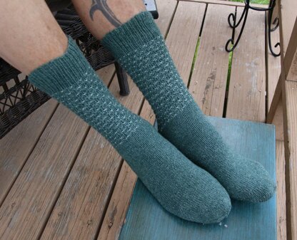 Dotted Ladder Socks are knitted top down and feature a 2-color slipped stitch pattern, worked with only one color at a time. The reason for this pair of socks was to try out an integrated heel method. Ideal for knitting both socks on one circular needle, at the same time. The resulting integrated heel looks like the regular heel flap and gusset construction, but is accomplished without picking up any heel flap stitches. This heel construction is surprisingly easy and will soon become the go-to method for all knitters wanting to knit 2 socks at the same time.