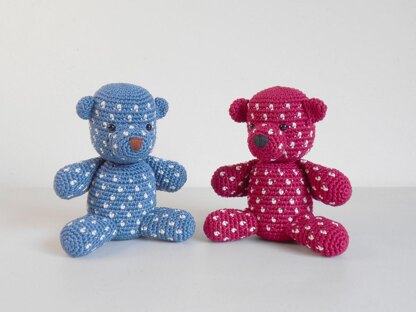 If you want the formatted, ad free, 11 page PDF document (with written instructions and more than 60 images in photo tutorials) of Dotty Bear, this is available in my pattern store.
