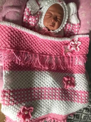 A LOVELY CAR SEAT/MOSES BASKET BLANKET, QUITE EASY AND QUICK TO KNIT IN D.K YARN