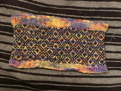 Double Cross Cowl is a companion to the Double Cross Hat and comes in two sizes, 26 or 28 inches circumference.