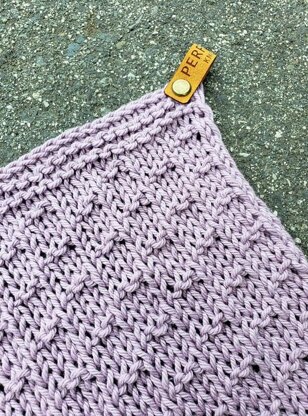Yarn required: Any worsted weight cotton yarn that you can get gauge with. I used Knitpicks Dishie yarn (190 yds per 100 g ball) in Lilac Mist and Kenai.
