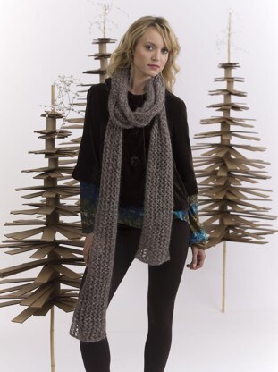 This interesting double YO lace pattern can be used to make a dramatic long skinny scarf (pictured here) , or change the cast on to make a wide shawl. Just keep the cast on in a multiple of 4.