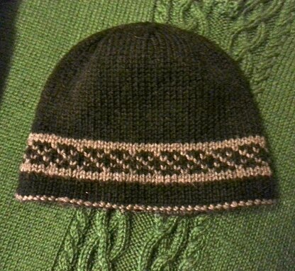 This hat is knit in the double knit stitch on a circular needle in a round. It has no seams to sew when you are finished. You will need 2 skeins of yarn in two different colors. You will also need double pointed needles to close at the top. It is reversible and very warm as it is double fabric.