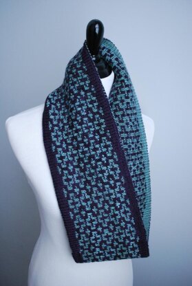 This cowl is knit seamlessly in the round using the double-knitting technique, so there is no wrong side. To knit this cowl, you should be familiar with double-knitting and able to work a double-knit color pattern from a chart. A photo tutorial is included for the two-color cast on method used in the pattern.