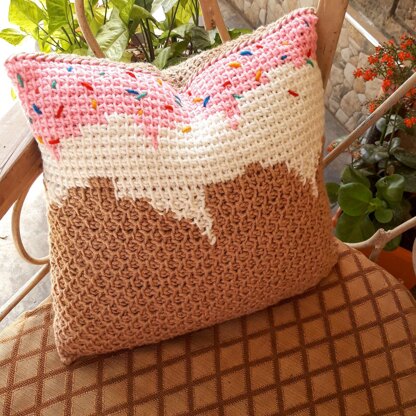 Add some yummy goodness to your décor with this Tunisian crocheted Double Scoop Throw Pillow. Looks great in a kid's bedroom (or yours!) and on the couch.