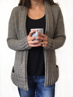 Down Home is knit flat and seamed for stability. The fronts are knit in one piece. You’ll cast on for the left front and work from the bottom up through the shoulder shaping and across the neck before working the right front from the top down.