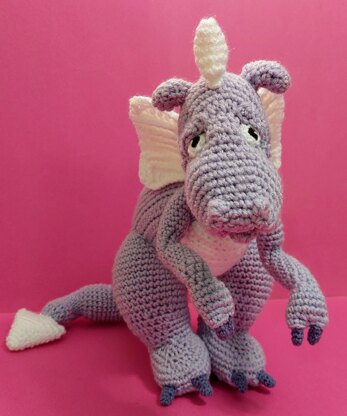 This dragon was created based on the memory of reading a dragon book to my son when he was very young. I wanted to make a friendly, sturdy dragon with sparkly features.