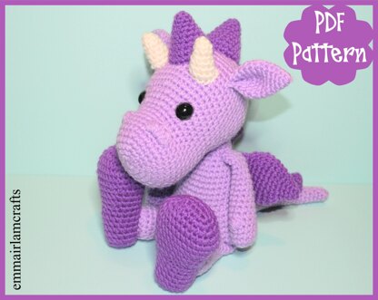 This listing is for a Debbie The Dragon crochet pattern in pdf format, NOT a finished item. Finished dragon will be approx. 13" tall when made with specified DK yarn.