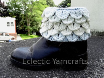 This boot cuff uses the crocodile stitch and is worked in the round.