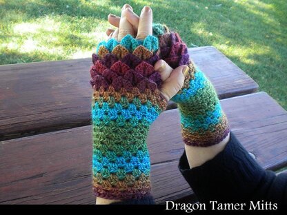 Super comfortable and flawlessly shaped fingerless mitts... enhanced with dragon scales! Perfect for dragon lovers, Game of Thrones fans, or anyone who loves to sport a little style on their hands. Great for people who complain about having cold hands, but still need access to their fingertips. Ridiculously addictive to make. I can easily whip out a pair of these in an evening. Make a pile of them to give as gifts! (Yes, the scales go all the way around.)