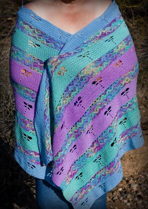 A bevy of beautiful dragonflies flitter across a Monet-inspired backdrop of blues, aquas and violets. This oversized wrap is soft and cozy, a warm hug on those chilly evenings. Stitches are simple and easy to do.