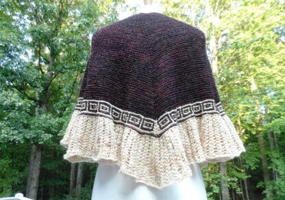 A garter body and lacy ruffle are joined by a simple mosiac pattern. You are always just working with one color on a row.