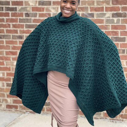 The Draped in Diamonds Poncho was inspired by fashion. This interpretation required texture for a unique crochet poncho that is sure to be a show stopper.