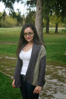 Draperie is the comfort of knitting and wearing garter stitch. The stretchy, squishy feel of the texture provides a fabric that drapes and wraps around your body wonderfully. The perfect item to casually throw on for extra warmth, Draperie can be worn with either side as the top; converting the piece from a cardigan to a more shrug-like piece instantly!