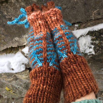 Drawstring convertible mittens will solve all your problems. Well, okay... not really, but they will solve all your mitten problems. With the top ribbing folded down, you've got fingerless mitts. With the ribbing up and the drawstring tied tight: you've got mittens, with none of the palm bulk, buttons, or drafts that come with fold-over-top style convertible mitts. Plus, you've got a bow. The thumb is a tube of ribbing that can be folded up or down. Great for commutes, chores, an evening out, or any time you need some mitten versatility.