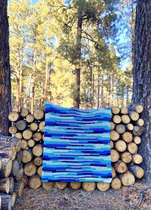 An easy, beginner crochet blanket designed for Red Heart Granny Square All In One yarn. Go with the flow of color changes- no cutting or controlling colors needed. Just relax, double crochet, and let the stripes create their magic. A beautiful valley down the center of the blanket. You can almost see a river running through it!