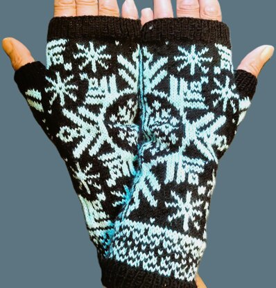 2. Options: There are 2 options: (1) trees or (2) snowflake. There is also an alternative longer cuff option (recommended only if you like longer arm-warmer style gloves).