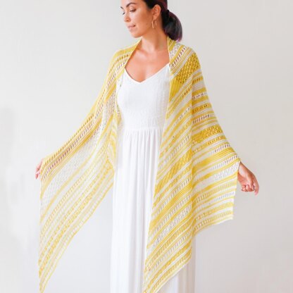 The textures of this design were inspired by the gorgeous blooms and tender stems of the drimia plants. Drimia can be worn as a cozy wrap to provide comfort during the chilly spring nights, and as a long lightweight scarf once the warm weather comes into its own. Generous size and optional tassels add an extra touch of boho to this piece. Knit in just two skeins of fingering weight yarn, the wrap is easy to style and to wear.