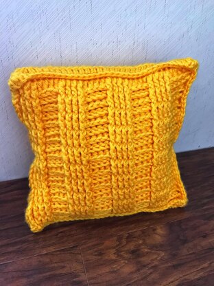 Dréimire Pillow Cover is a bulky weight pillow cover featuring the crochet ladder stitch climbing up the front and a buttoned envelope style back.