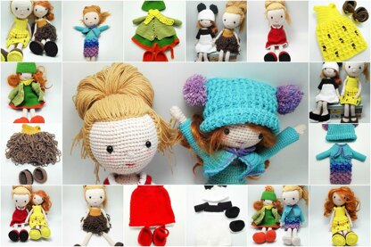 This crochet doll pattern it is for the dolls base, attaching the hair and 6 outfits. This is a collection for kids that like to change the clothes of the dolls. This doll it is bendable due to the wire used in building her. This a pattern for making the doll body, head, attaching the hair and 6 different dresses for the doll.