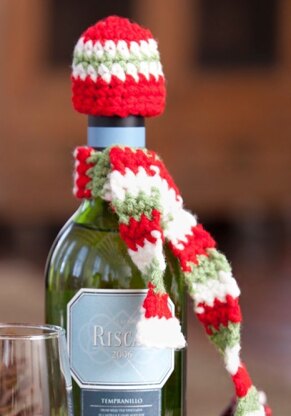 Dressed-to-Party Bottle Accessories in Red Heart Super Saver Economy Solids - LW2663