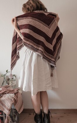**↟ What you need to know:**Knit/purl M1r/l Yarn over Drop stitch Eyelet Lace Applied border How to make tassels At the end of the pattern you will find some useful links for some of these techniques.
