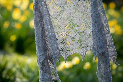 Drifting Seas is an airy lace shawl that combines a handful of cables with lots of lovely lace. A gently repeating lace motif extends across the fabric and culminates in a simple cabled garland towards the border. I love introducing cables in lace motifs, using a lace weight yarn – the cables give a three dimensional quality to the fabric as they rise above the backdrop of lace. With this shawl you get the benefit of cables, but only have to work them for 8 rows in total. Finally, a delicate flower motif set into the scalloped edge makes this an eye catching lace shawl, and a great way to try your hand at delicate cabled lace.