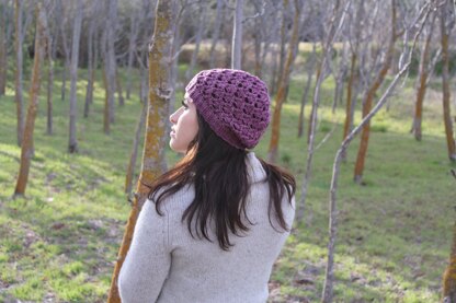 Dripping Vines is covered in a rich lace pattern and has a slouch style. The pattern is written out and charted.