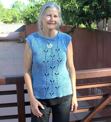 Dryden Top has lace panels down the front and back and has a flattering positive ease. This is knit top down, completely in the round and you will only have 2 ends to weave in when you are done. This pattern is suitable for bamboo for summer and wool for winter.