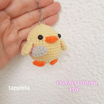 Cute amigurumi duck with knife keychain or Car mirror hanging. Cute duck meme. Amigurumi baby duck with knife. Crochet pattern PDF.