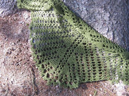This is a top down shawl that uses V stitches & double crochet to best advantage. It is rated advanced beginner-intermediate (or as one tester put it, an adventurous beginner).