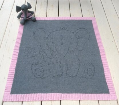 This blanket, decorated with a elephant in relief, will warm baby everywhere ! The body of blanket is knitted first. Then stitches are picked up all around border, who is knitted in 2 pieces (to avoid too many stitches).