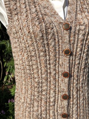 A super versatile waistcoat, suitable for men and women. Smart and neat with mock cables and twist stitch patterning - no cable needle required! The borders are in 1/1 rib and give a tailored finish. Worked bottom up and with full written instructions.