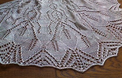 Duplessis is a semi-circular shawl with lace motifs, worked from the top-down.