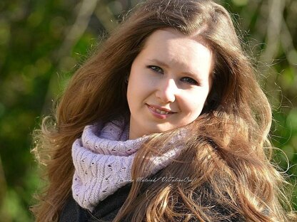 This light weight lace cowl is stylish, warm and comfortable. This beautiful accessory could be worn with coat, jacket or a dress. I wanted to knit something simple and chic. I designed this cowl with lace fragments and tiny cables. The beautiful yarn gives this beautiful drape and glamours sheen.