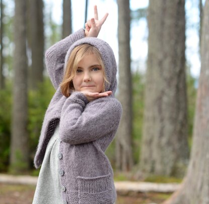 Sweater sizes: Designed with a positive ease of approx. 1-3 inches. Circumference measured with sweater flat on a table at chest after blocking. Pictured size 5/6 on a 5 year old with 2 inches positive ease.