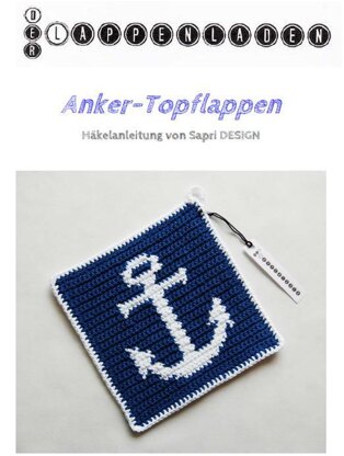 Neben der schriftlichen Anleitung für den Anker-Topflappen sind ein Häkelschema in Farbe und ein Häkelschema in schwarz-weiß enthalten.